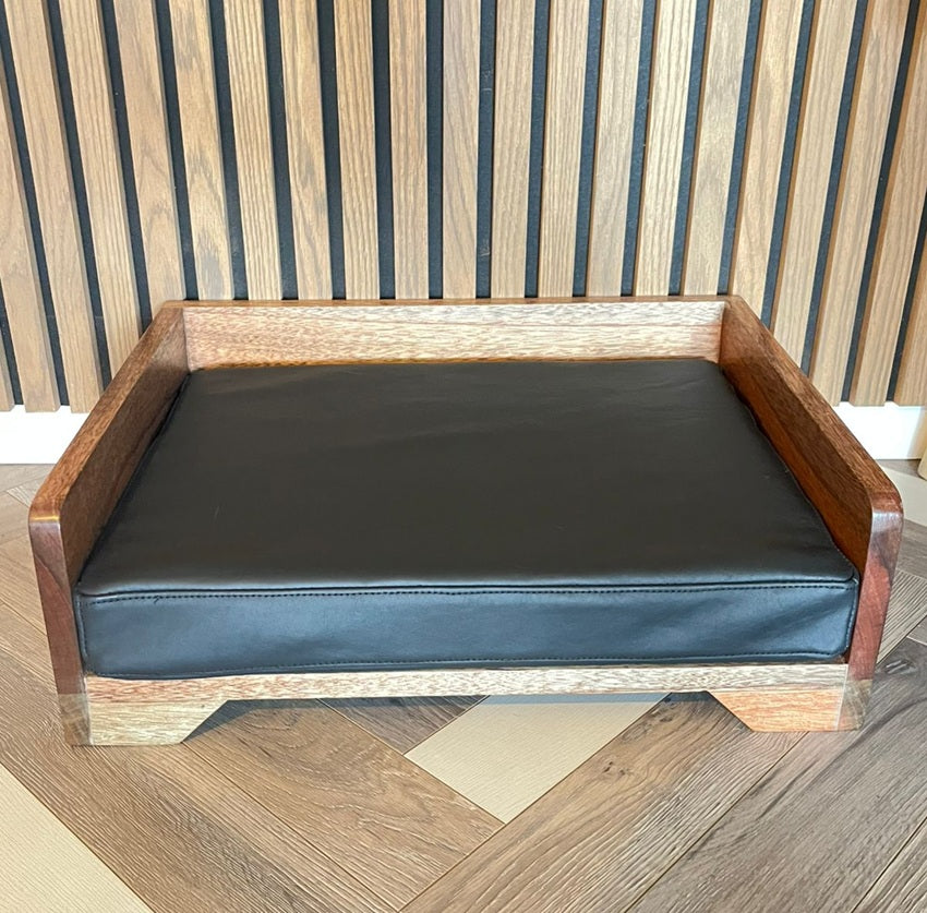 Introduce artisanal elegance to your home with the Bellus Solid Wood Pet Bed, a true statement piece that blends fine craftsmanship with functional luxury. Designed for the dog or cat who is part of the family and the home that values timeless design. This bed is made from solid Meranti, a richly toned African hardwood celebrated for its durability, natural luster, and distinctive grain patterns.